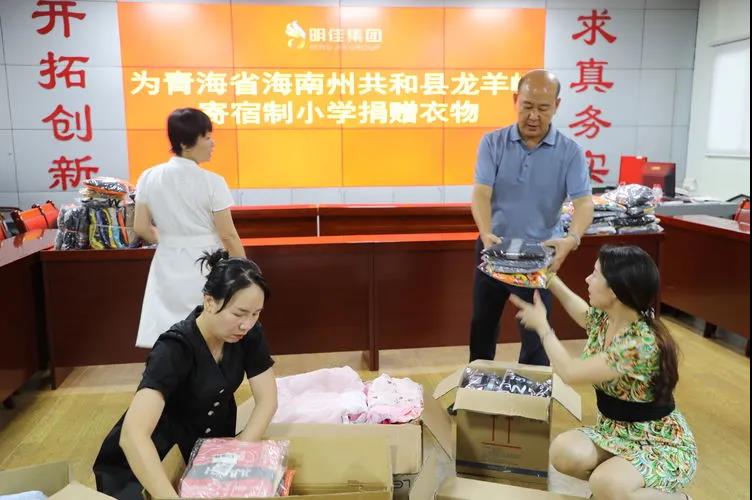 7月29日,明佳集團黨支部在工作管理群號召管理層和辦公室人員為青海省海南州共和縣龍羊峽寄宿制小學孩子捐贈衣物,一周時間內(nèi)先后收到職工捐贈衣服120公斤。公司董事會也購買了228件新衣服捐贈給孩子們。